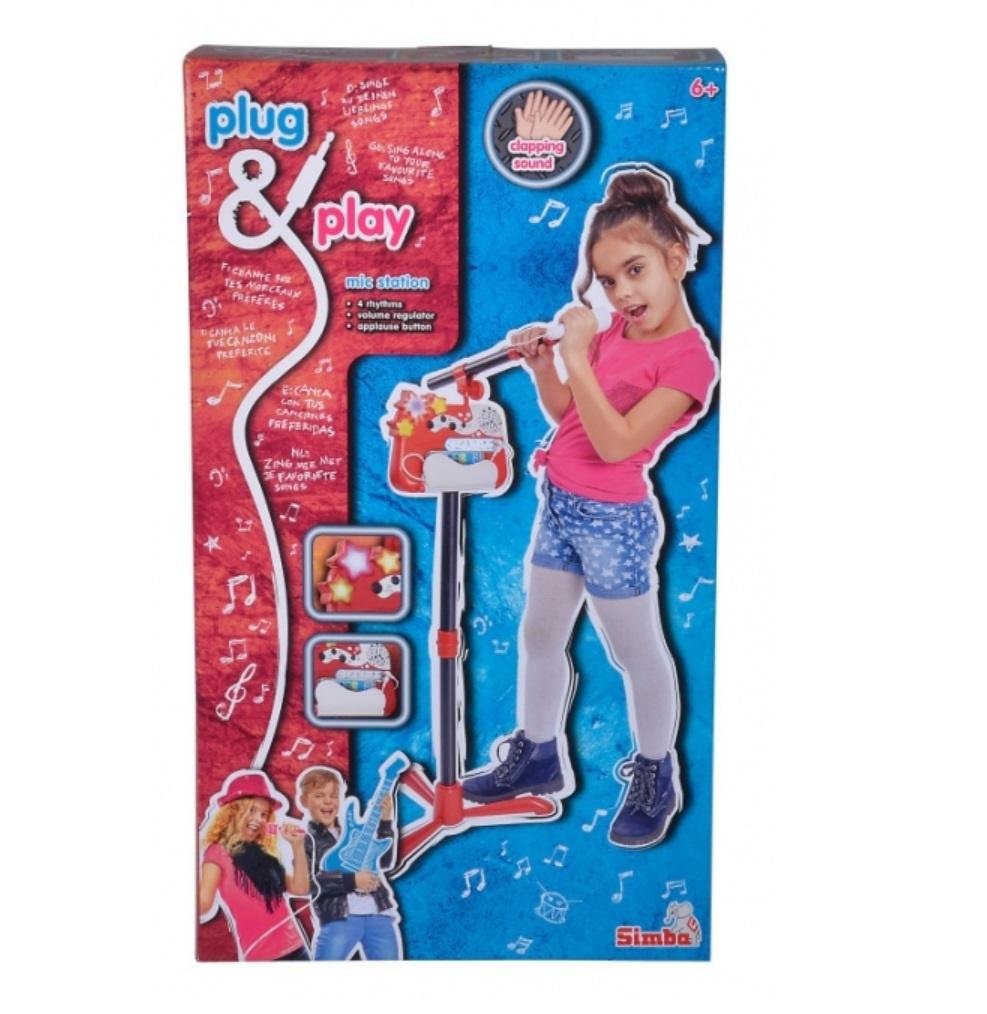 Mikrofon na statywie, z kolorowym światłem, efekty dźwiękowe (4 różne rytmy, oklaski), możliwość podłączenia MP3 (brak w zestawie), zdejmowany panel MP3 do zabawy bez statywu,regulacja wysokości do 130 cm, zasilany bateriami 3x1,5V LR6 (niedołączone) číst celé