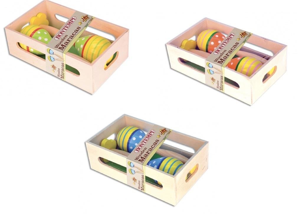 Mix wzorów. Towar wysyłany losowo.Drewniane marakasy o wielkości 18 cm w różnych wersjach kolorystycznych. Dzięki przyjaznemu dziecku wyglądowi będzie to świetny wybór dla najmłodszych, który rozwinie ich pierwsze zainteresowania muzyczne i umożliwi im swobodne granie na dostosowanym do ich wieku...