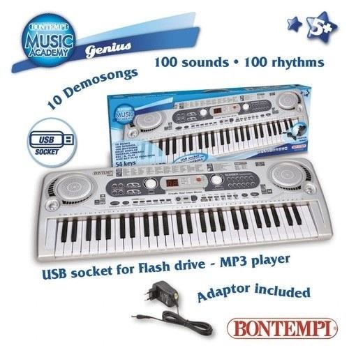 Organy elektroniczne włoskiej firmy Bontempi. Instrument zawiera: 54 klawisze, 100 dźwięków, 100 rytmów, 5 padów perkusyjnych lub odgłosów zwierząt, 10 melodii, funkcję nagrywana i odtwarzania, regulację głośności oraz tempa, funkcję automatycznego wyłączania.