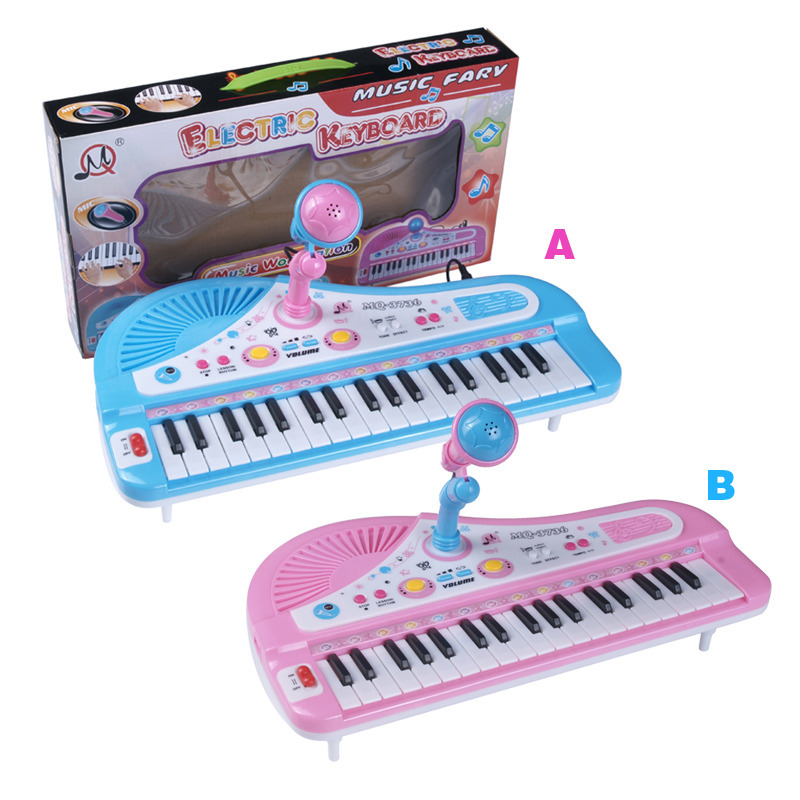 Elektronické klávesy s 37 klávesami, 10 demo písněmi, 2 tóny. Má možnost nastavitelnosti dvou úrovní hlasitosti a rychlosti tempa. Součástí balení je i mikrofon. V modré a růžové barvě. Dop. věk 3+ / Rozměr: 19x36x5cm Baterie: 4x AA, nejsou součástí