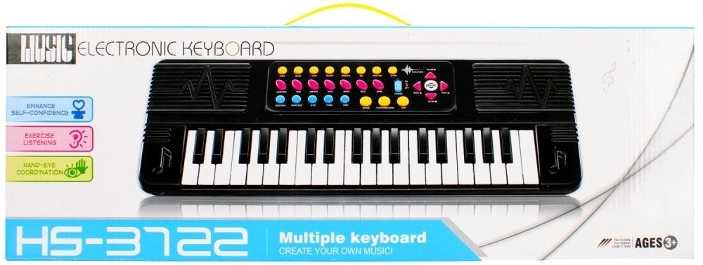 Zalety produktu: elektroniczne organy posiadają dodatkowe efekty dźwiękowe w postaci melodii- uruchamiane za pomocą przycisków, ,po naciśnięciu selektora za każdym razem, gdy naciśniesz klawisz, można odpowiednio zmienić rytm na klawiaturze, posiada funkcję nagrywania, dodatkowo do organów można podpiąć mikrofon z zestawu. Bardzo ważną rolą w życiu każdego z nas odgrywa zmysł słuchu. Za pomocą dźwięków rozwijamy swój umysł. Dzięki Organom MEGA CREATIVE Twoje dziecko pokocha Muzykę i być może w przyszłości zostanie gwiazdą estrady! Zawartość zestawu: elektroniczne organy, mikrofon do podłączenia za pomocą kabla USB. Wymiary/waga/baterie: wymiary produktu (dł. x wys. x gł.)[cm]: 47x18x5 ,wymiary opakowania (dł. x wys. x gł.) [cm]: 52x18x6 waga produktu bez opakowania [kg]: 0,69 kg, waga produktu w opakowaniu [kg]: 0,80 kg, wymaga zasilania bateriami 4 x AALR06 -Nie załączono do zestawu. Zabawka przeznaczona dla dzieci w wieku: 3+. Zabawka pakowana w kartonik.