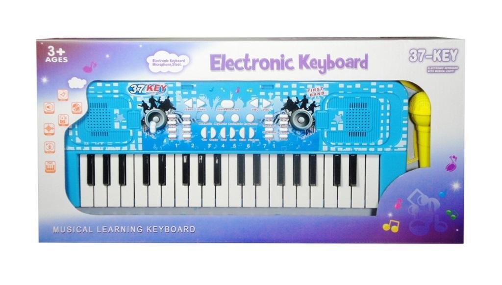 Organki z 37 klawiszami z mikrofonem. Organki posiadają przyciski z 8 odgłosami instrumentów oraz 8 przycisków z różnymi melodiami w innym rytmie. Ponadto można regulować tempo piosenek, głośność. Produkt działa na baterie typu AA. Baterie nie są załączone do zabawki. Produkt występuje w kilku wersjach kolorystycznych, wybeirany losowo. Cena dotyczy jednej sztuki. Produkt zapakowany w kartonowe opakowanie z okienkiem. Podane wymiary są wymiarami opakowania. Produkt dla dzieci od 3 lat.
