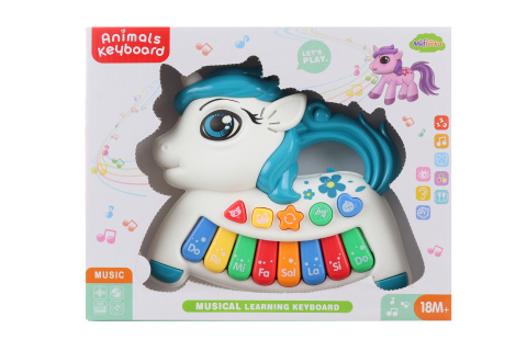 Plastové piánko pro nejmenší s motivem jednorožce. Napájeno na 3xAA baterie(nejsou součástí balení). Po zapnutí piánko vydává tóny nebo hlasy zvířátek. Baleno v krabici. Rozměry balení cca 28x22,5x5 cm. Rozměry piánka cca 22x19 cm. Věk 18m+