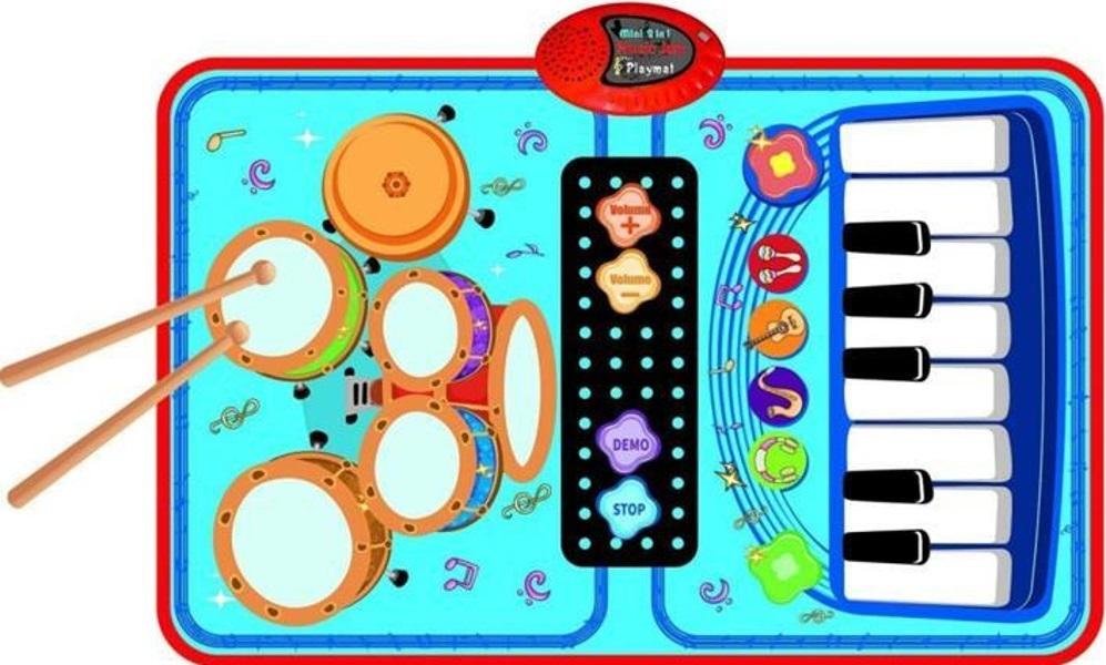Kolorowa mata muzyczna dla dzieci. Mata jest wrażliwa na dotyk. Posiada wbudowane dźwięki instrumentów, regulację głośności . Wymiar maty po rozłożeniu: 70x45 cm Zabawka działa na baterie typu AA. Baterie nie są załączone do zabawki. Zabawka zapakowana w kartonowe opakowanie. Podane wymiary...