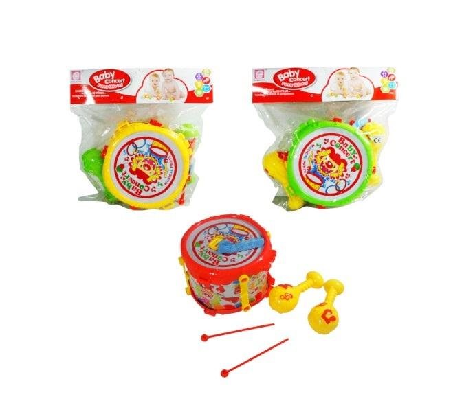 Kolorowe instrumenty muzyczne dla dzieci. Grzechotki i bębenek z pałeczkami. Produkt występuje w kilku wersjach kolorystycznych, wybierany losowo. Cena dotyczy jednej sztuki. Zabawka zapakowana w przezroczysty worek. Podane wymiary stanowią wymiar instrumentu. Zabawka dla dzieci od 3...
