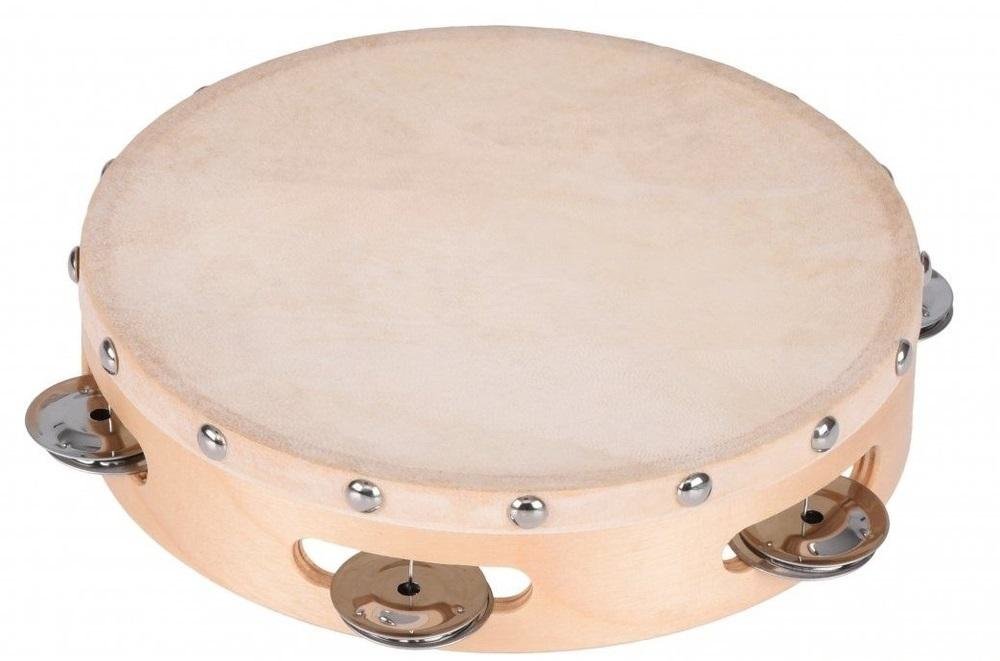 Tamburyn z naturalnej skóry z 5 talerzykami