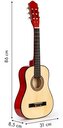 Nauč se hrát na kytaru! Dětská kytara pro kluky i děvčata byla navržena tak, aby měla všechny vlastnosti profesionálního nástroje. Má kobylku a hmatník se šesti strunami (3 kovové, 3 nylonové). Krk má 18 pražců a je zakončen hlavou s ladící mechanikou. Délka kytary: 86 cm Poznámka: Kytara je dodávána v nenaladěném stavu s povolenými strunami.