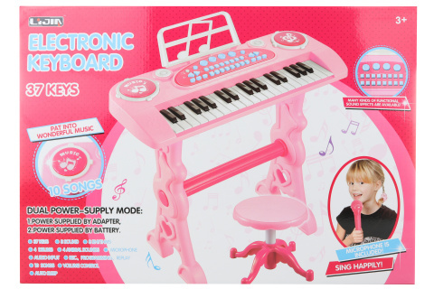 Díky připojitelnému mikrofonu a konektoru pro MP3 přehrávač si děti mohou zpříjemnit hudební zážitek a zároveň rozvíjet svůj hlas. Piánko lze napájet jak z adaptéru do české zásuvky, tak i na baterie (4x AA, nejsou součástí balení), což zajišťuje jeho snadné použití doma i na cestách. Součástí balení je pohodlná dětská stolička, která zajistí správné posezení malého hudebníka.