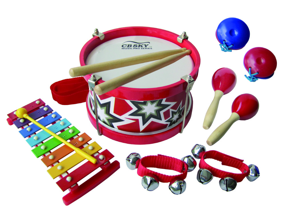 Hudební set který obsahuje bubínek s paličkami, xylofon,rolničky na náramku, 2ks rumba koule a 2ks kastaněty. Oblíbené nástroje pro malé hudebníky. Rozvíjí dětskou motoriku, hudební sluch a hravost. číst celé