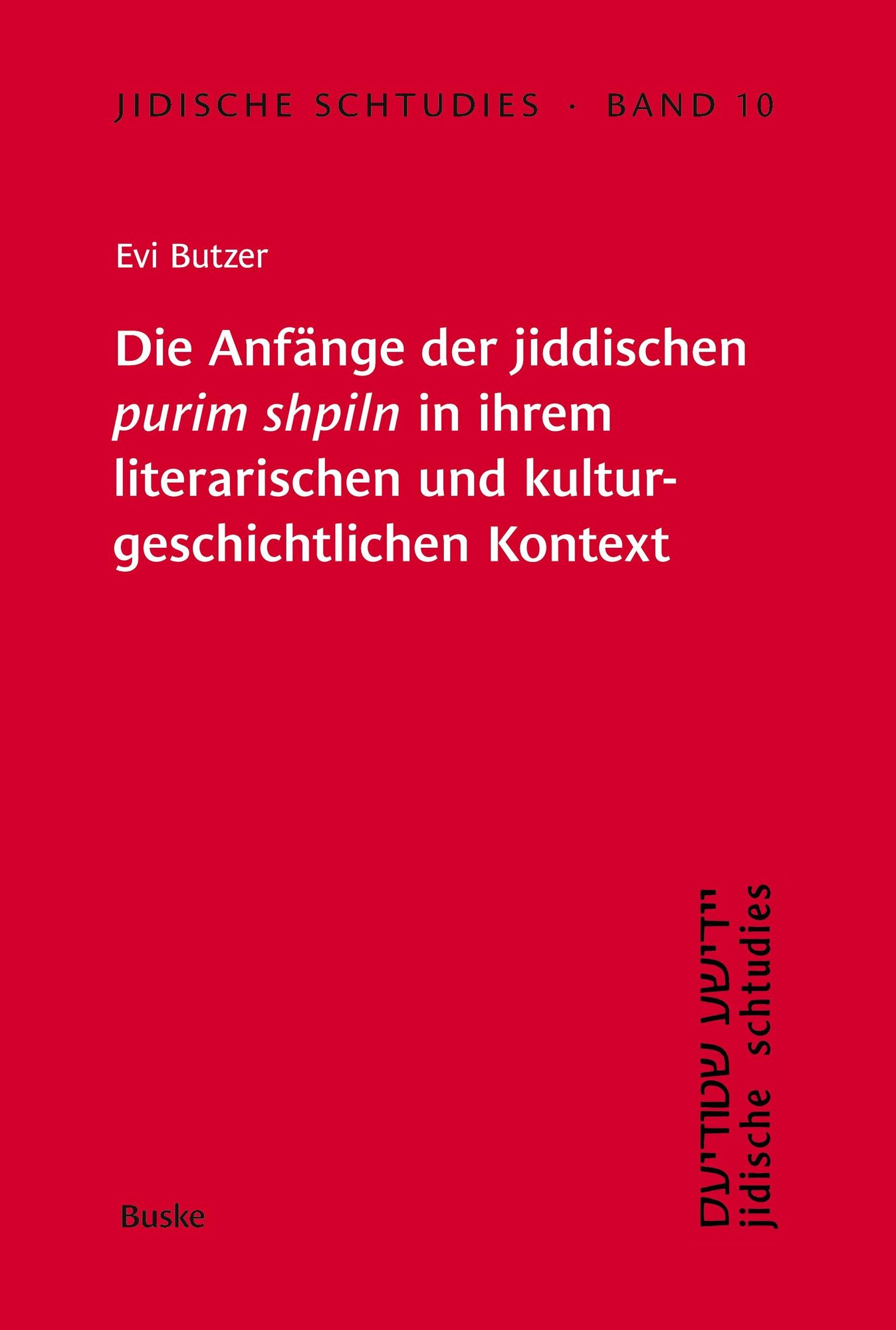 Jidische Schtudies 10: Die Anfänge der ­jiddischen purim shpiln in ­ihrem ­literarischen und kultur­geschichtlichen ­Kontext (německy)