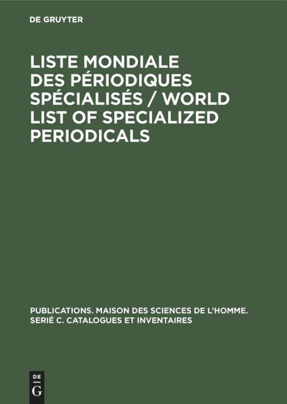 Liste mondiale des périodiques spécialisés / World list of specialized periodicals (německy)