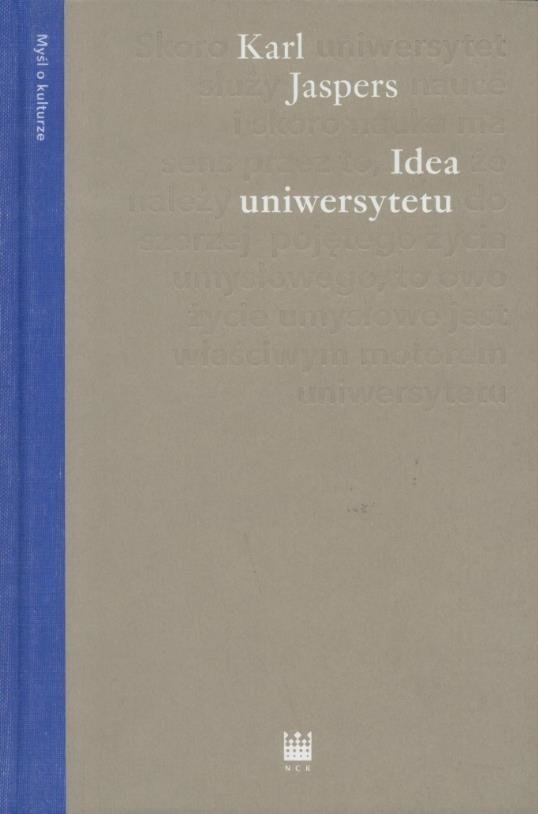 Karl Jaspers (1883-1969), niemiecki filozof i psycholog, jeden z głównych przedstawicieli filozofii egzystencjalnej. Napisana wkrótce po II wojnie światowej Idea uniwersytetu (wyd. drugie zmienione, 1946) jest wyrazem pogłębionej refleksji nad misją uniwersytetów, mającą niewątpliwe znaczenie dla kondycji człowieka i wielu aspektów jego działalności.