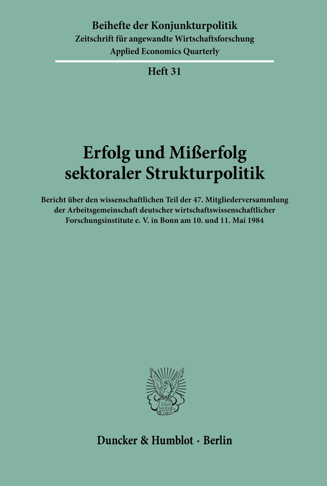 Erfolg und Mißerfolg sektoraler Strukturpolitik.