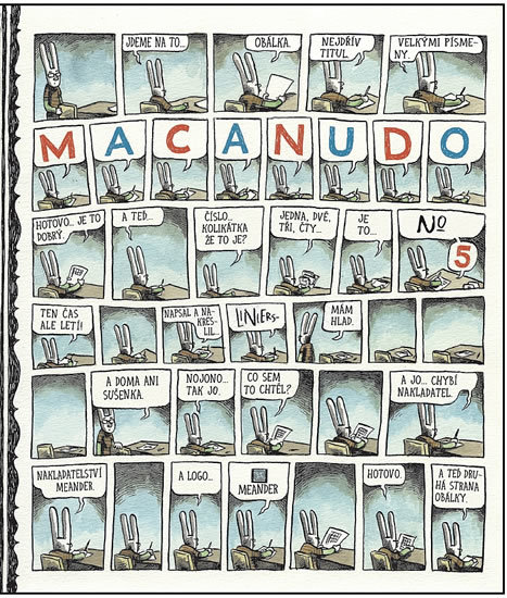 Jedna z mála dobrých zpráv, které si chce po ránu člověk přečíst, je, že na pultech knihkupectví leží nový díl MACANUDA. Stripy, které vejdou do historie zábavných i vážných, přemýšlivých a něžných komiksů. Hořkosladká sprcha nakažlivých úsměvů, kde se promenádují normální lidé, Olga (vymyšlený...