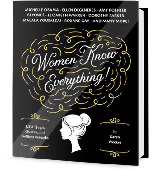 Tato kniha s více než 3 000 citáty o módě, rodině, vědě, umění, historii, lásce, smíchu a dalších tématech, vás jednou provždy přesvědčí o tom, že ženy ví všechno. Je plná vtipu, moudrosti a inspirace od legendárních žen. Mezi nimi najdete například Abigail Adams, Eleanor Roosevelt, Oprah...