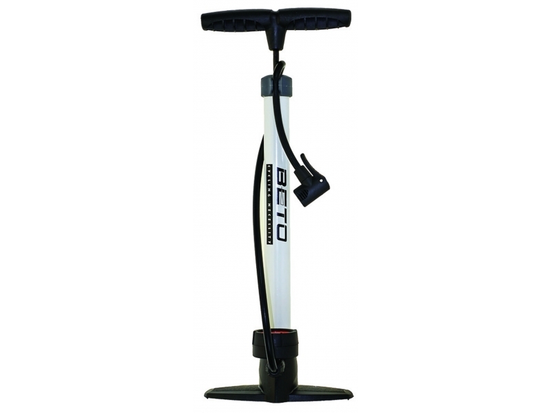 Hustilka z Fe slitiny s plastovou spodní částí a pogumovaným madlem s oboustrannou hlavicí na všechny typy ventilků Ventilky: AV-moto, FV-galuskový, DV - klasický s manometrem do 160 PSI/ 11bar výška: 55 cm, hmotnost: 1043g Barva: bílá Výrobce: Beto Balení: karta Beto