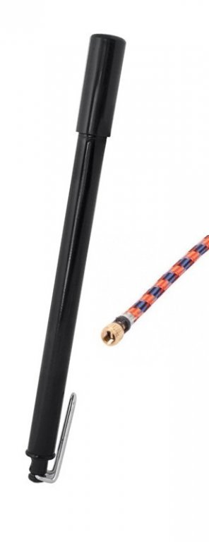 Hustilka je navržena speciálně pro ventil typu MOTO - AV, což zaručuje jednoduchou a pevnou fixaci hadičky na ventil pneumatiky. Díky robustní kovové rukojeti a smaltovanému provedení je hustilka nejen odolná, ale také příjemná na používání. Její délka před stiskem je 365 mm, po stisknutí se zkrátí na 345 mm, což usnadňuje manipulaci a umožňuje pohodlné ovládání i v náročnějších podmínkách.