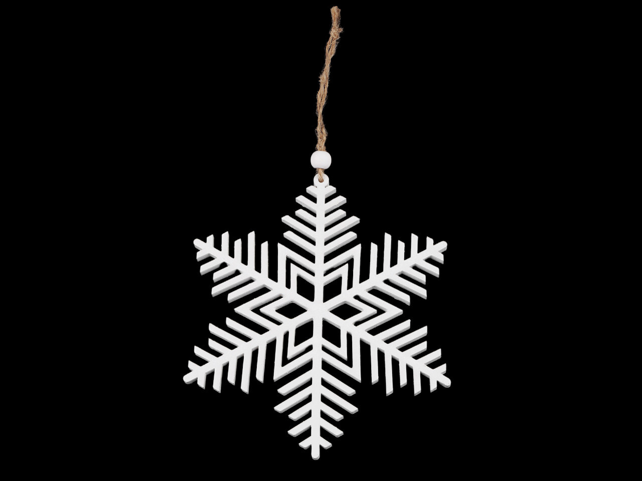 Dřevěná vločka k zavěšení Ø14,5 cm - 1 ks - 1 bílá