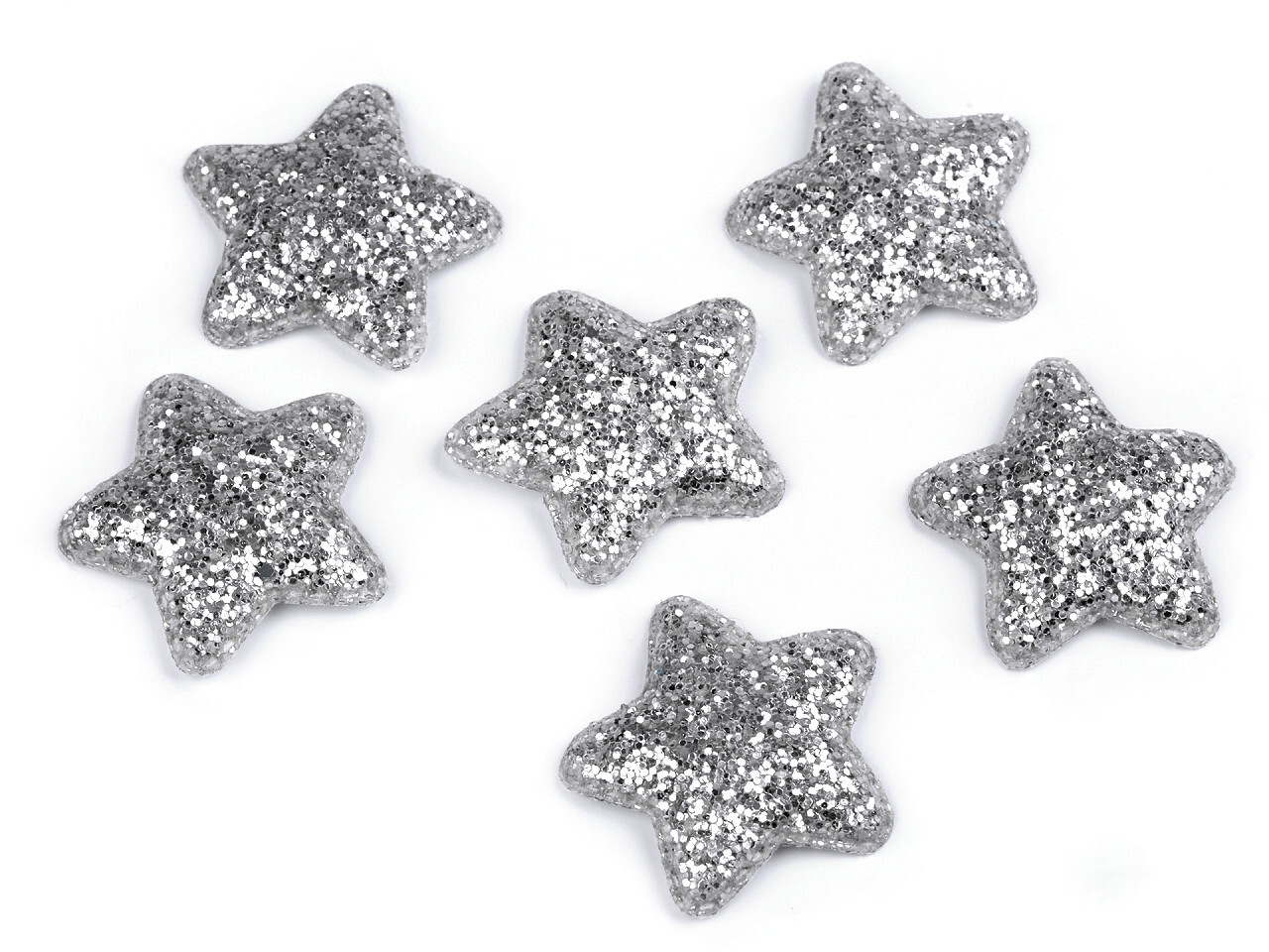 Hvězda s glitry Ø50 mm - 10 ks - 2 stříbrná