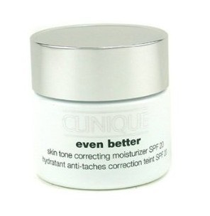 **Clinique Even Better Skin Tone Correcting Moisturizer SPF20** denní rozjasňující pleťový krém. Lehký hydratační krém, který okamžitě hydratuje pleť, za 2-4 týdny pomáhá sjednotit tón pleti a chrání před vznikem dalších tmavých skvrn a jiných nejednotností tónu pleti. Prozařující směs houbových kvasinek pomáhá rozložit existující tmavé skvrny na mikročástice "prachu" a exfoliační složky je pak odstraní. Poskytuje efektivní ochranu před UVA a UVB zářením, a tím zamezuje vzniku pigmentových skvrn. Zesvětluje již vzniklé pigmentové skvrny. Hydratuje, zklidňuje a rozjasňuje pleť. **Použití**: Aplikujte každé ráno na čistou pleť. Krém lze používat také na dekolt a ruce.