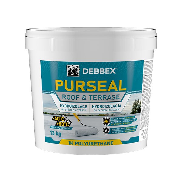Hydroizolace na střechy a terasy PURSEAL je polyuretanový hydroizolační nátěr na střechy, asfaltové pásy, bitumenové nátěry, terasy s rohožemi, nátěr PU pěny na její ochranu či kovové povrchy. Má výbornou odolnost proti UV záření a teplotám až do -40 °C s odolností proti mechanickému namáhání.