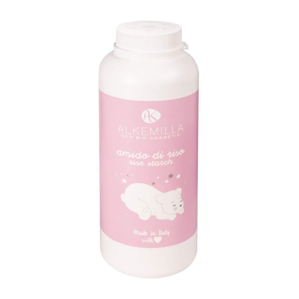 100% přírodní rýžový škrob obohacený o výtažky z organického slézu a heřmánku ve slunečnicovém oleji. Doporučuje se do dětských koupelí jako alternativa k mycím prostředkům a mýdlům, má osvěžující, zvláčňující a zklidňující účinky a zanechává pokožku jemnou a čistou. Při aplikaci přímo na pokožku má zklidňující a absorpční účinek a zanechává pokožku svěží a suchou. Díky přirozeným vlastnostem škrobu poskytuje úlevu v případě zarudlé pokožky.