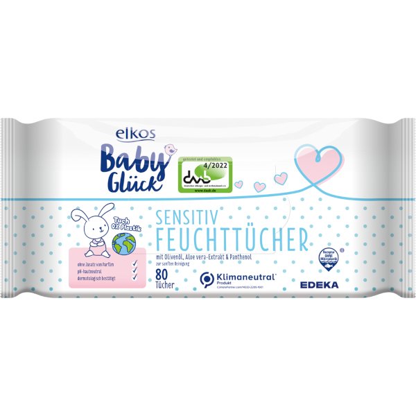 Prémiová řada výrobků Elkos - německé vlhčené ubrousky pro děti s panthenolem, bez parfémů a barviv 2x balení po 80Ks