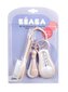 Praktická sada základních toaletních potřeb při péči o děti od narození obsahuje teploměr do vody, kartáč, hřeben, kleštičky na nehty a kroužek na zavěšení.