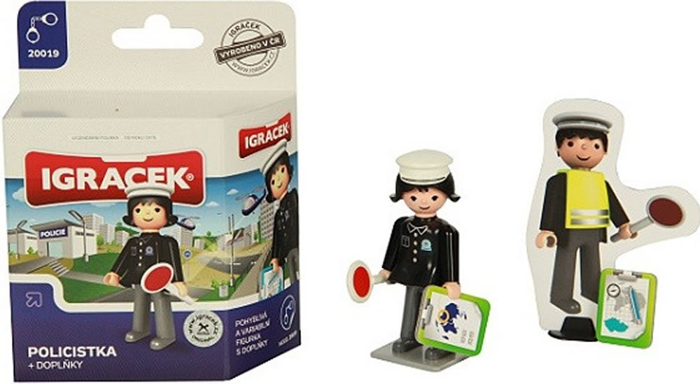 Igráček mini verze k igráčkovi klasickému. V balíčku najdete policistku s doplňky, jedná se o policistku s plácačkou a notýskem a k kní kartonový policista s mapou. Igráček je českým výrobkem pro české...