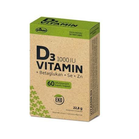 Vitamin D3 EKO kapsle obsahují vysokou dávku vitaminu D3 v kombinaci s beta-glukany s garantovanou čistotou minimálně 80 % a minerálními látkami zinkem a selenem, které jsou důležité nejen pro podporu imunitního systému.
