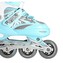 Hliníkový podvozek je osazen měkkými PU kolečky s ložisky ABEC7 pro svižnou jízdu. Vnější bota je pomocí stisku tlačítka nastavitelná do čtyř velikostí, toto řešení umožňuje precizní přizpůsobení velikosti podle aktuálních potřeb anebo se používá jako "rostoucí bota", která "roste" spolu s nohou dítěte. Na špičce jsou ventilační otvory pro maximální prodyšnost. Vnitřní bota je vyrobena z kombinace syntetické kůže, síťoviny MESH, EVA a pěny o vysoké hustotě. Zapínání je řešenou klasickou trojkombinací - šněrování, řemínek se suchým zipem a dvousekční přezka.