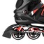 Kolečkové brusle NILS Extreme NA14124 jsou určeny k rekreačním projížďkám pro začínající a středně pokročilé bruslaře. Hliníkový podvozek je osazen PU kolečky o průměru 80 milimetrů. Tvrdost koleček je 82A, ta je ideálním kompromisem mezi rychlostí, životností a pohodlím. Kolečka jsou osazena ložisky ABEC 7 pro svižnou a plynulou jízdu. Skelet brusle je vyroben z polypropylenu, který dobře přenáší energii z odrazu na kolečka a zároveň vydrží i připadný pád. Pohodlná, poloměkká bota je vyrobena z kombinace semiše, síťoviny MESH - pro dobrou prodyšnost, EVA a pěny o vysoké hustotě. Vnitřní bota nemá krytou špičku, takže dobře větrá a noha se méně potí. Zapínání je řešeno klasickou trojkombinací - šněrování, řemínek se suchým zipem a dvousekční přezka. Pravá brusle je osazena brzdou.