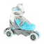 Plastový podvozek je osazen měkkými PU kolečky s ložisky ABEC7 pro svižnou jízdu. Vnější bota je pomocí stisku tlačítka nastavitelná do čtyř velikostí, toto řešení umožňuje precizní přizpůsobení velikosti podle aktuálních potřeb anebo se používá jako "rostoucí bota", která "roste" spolu s nohou dítěte.
