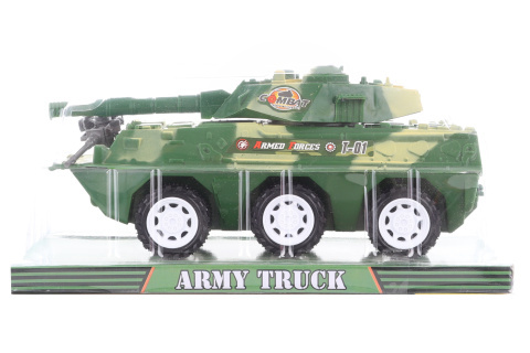 Plastové obrněné auto s otočným kanónem a kulometem o rozměru cca 25,5 x 10 x 11 cm. Rozměr balení cca 28,5 x 13 x 12 cm. Věk 3+