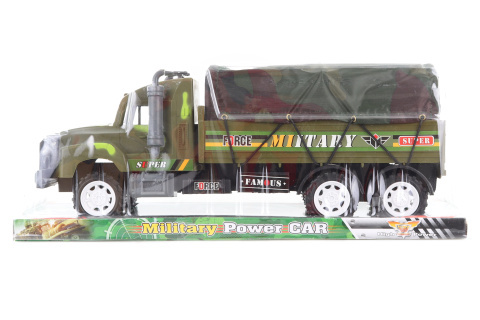 Vojenský kamion s plachtou o rozměru cca 38 x 14 x 9 cm. Rozměr balení cca 41 x 16 x 12 cm. Věk 3+