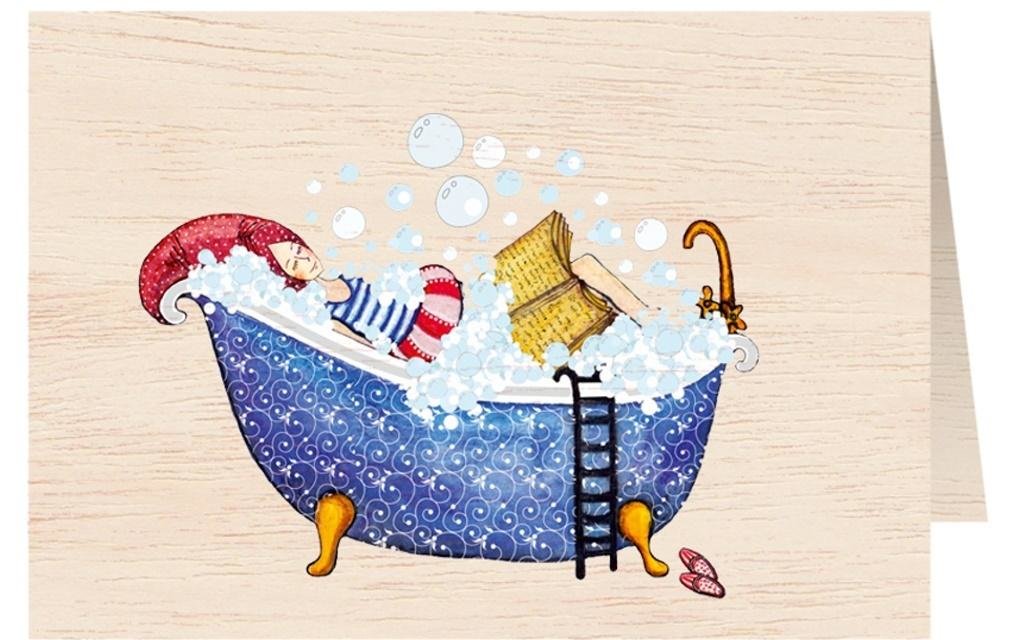 Karnet drewniany C6 + koperta Kobieta w kąpieli