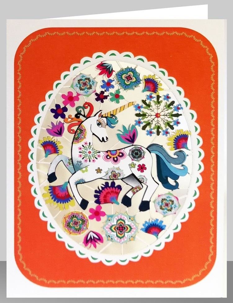 Karnet PM530 wycinany + koperta Jednorożec kwiaty