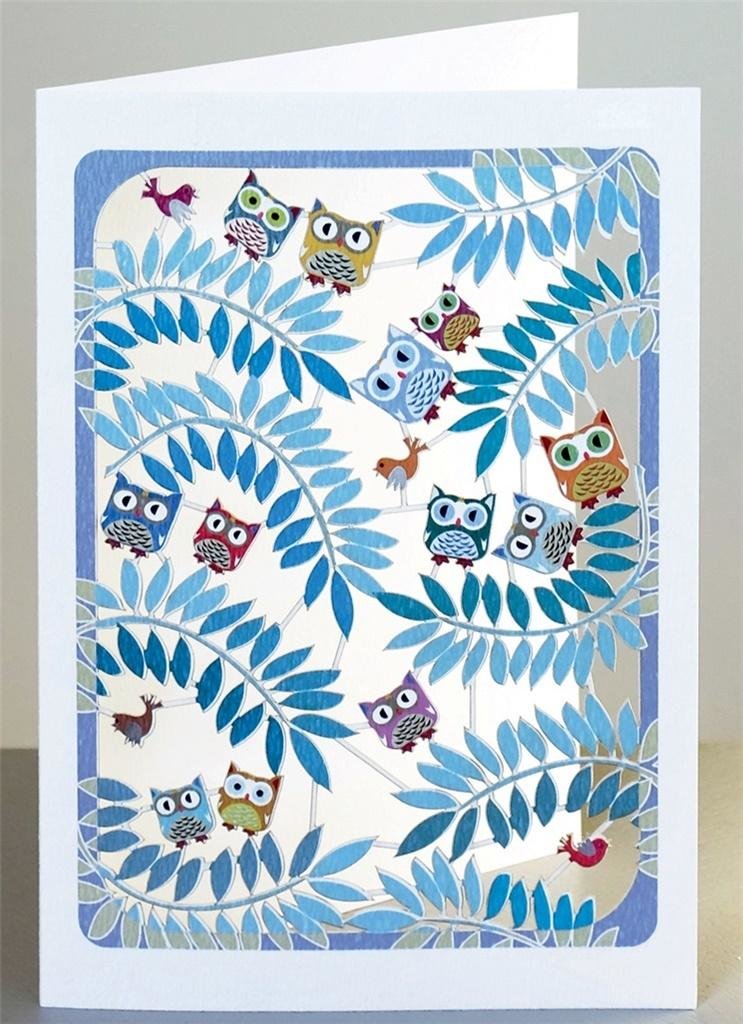 Karnet PM803 wycinany + koperta Sowy na gałęziach