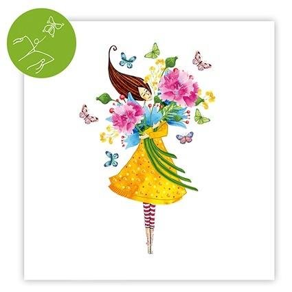 Karnet w formacie kwadratu (15x15cm) z niespodzianką. Po otwarciu karnetu wylatuje z niego papierowy motyl. Wyprodukowany na Litwie.