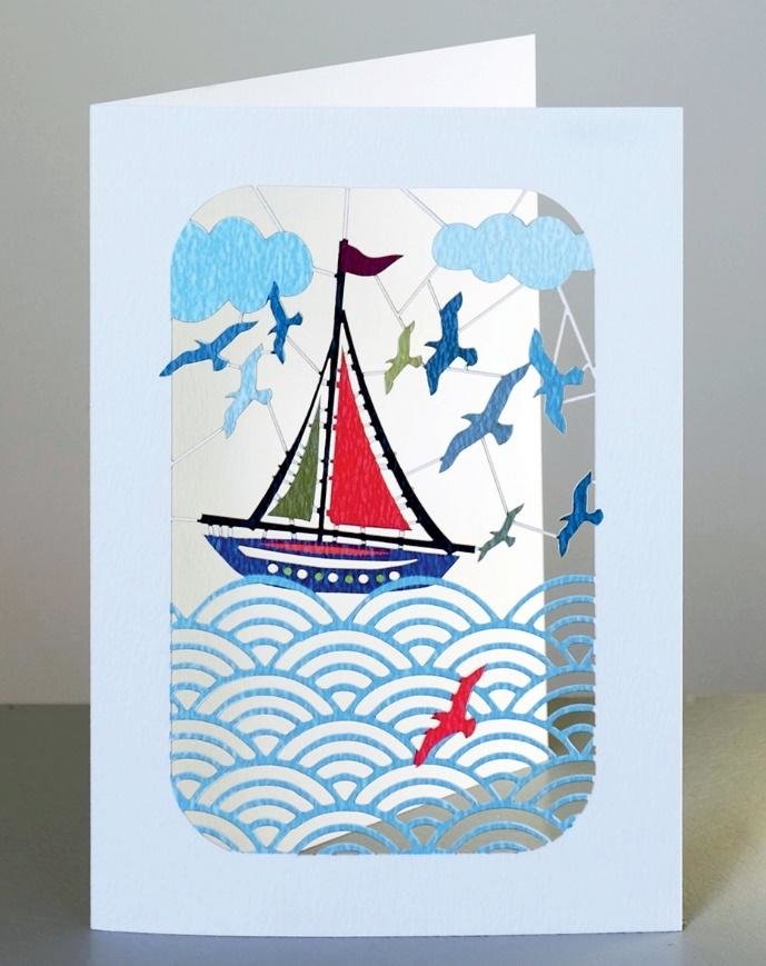 Karnet laserowo wycinany z kopertą. Z tyłu miejsce na życzenia. Wyprodukowany w Wielkiej Brytanii.