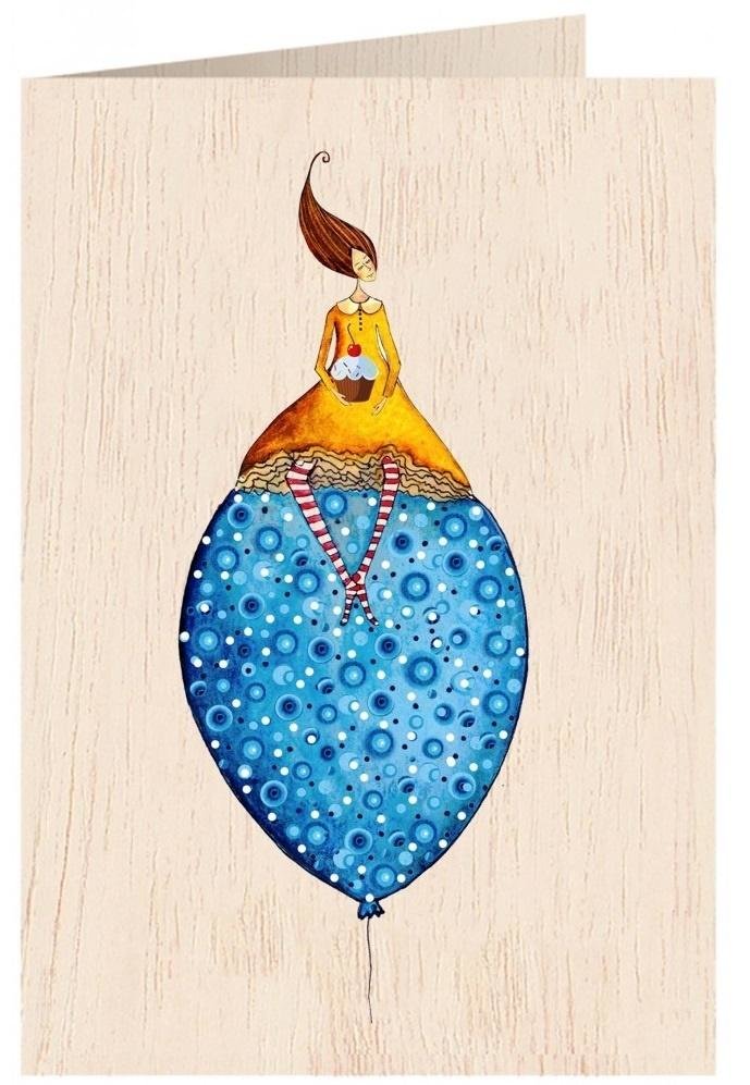 Karnet drewniany C6 + koperta Kobieta na balonie