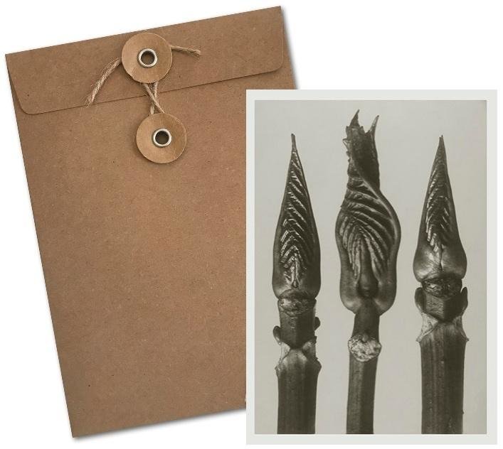 Wyjątkowy karnet retro (bez tekstu) z serii Karl Blossfeldt. W zestawie oryginalna brązowa koperta wiązana na sznurek.