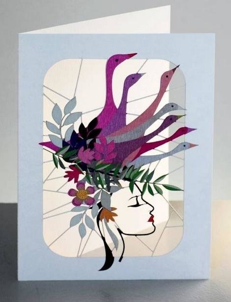 Karnet PM276 wycinany + koperta Kobieta z gęsiami