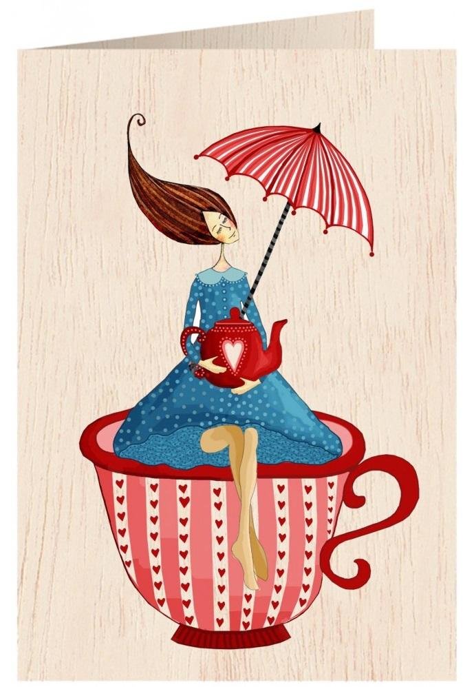 Karnet drewniany C6 + koperta Kobieta w filiżance