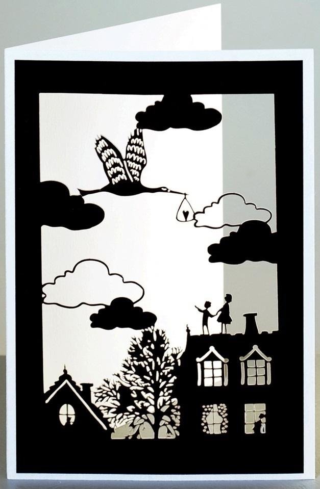 Karnet HDH06 wycinany + koperta Bocian Narodziny