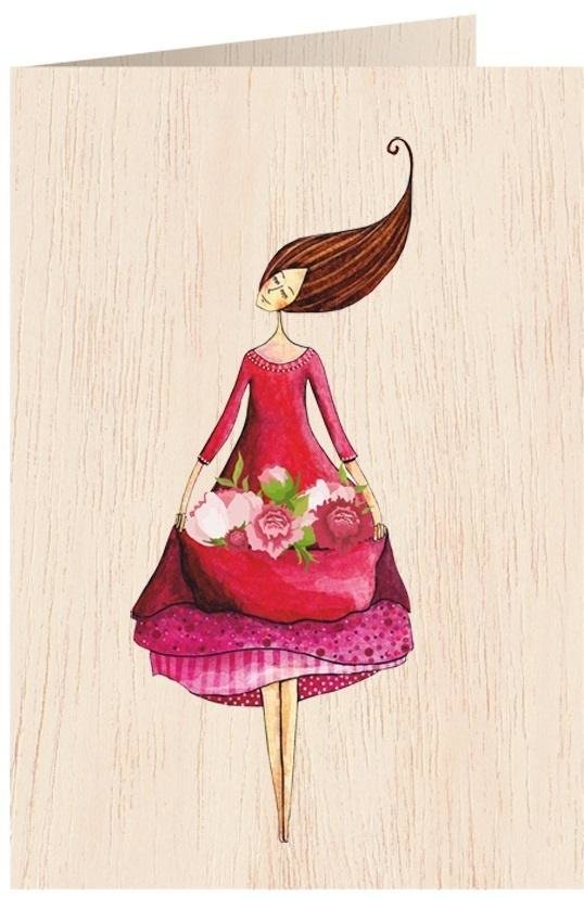 Karnet drewniany C6 + koperta Kobieta z kwiatami