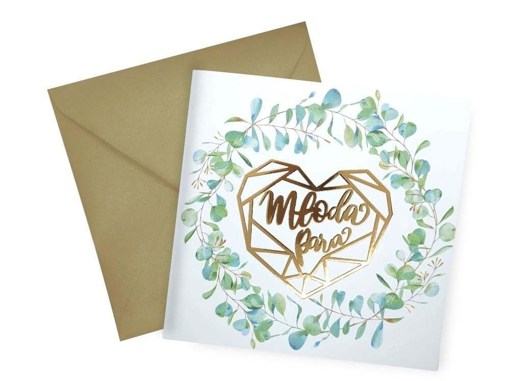 Karnet w formacie 15 x 15 cm. Wydrukowany na wysokiej jakości papierze. Uszlachetniony złotym metalicznym lakierem 3D. W zestawie perłowa koperta. číst celé