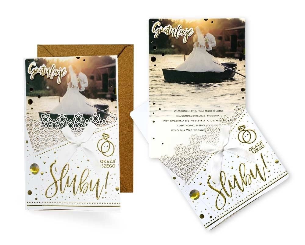 Kartka B6 z ozdobnej serii Dream Cards - nieduża, ale robi wrażenie dzięki atrakcyjnej kolorystyce i ciekawym zdobieniom. To idealny wybór łączący przyjazną cenę z jakością. Cechy szczególne: wielkość: B6, 16.6 x 11.7 cm po złożeniu, koperta: w zestawie, kolorowa, zdobienia: różnorodne, bogate (w zależności od wzoru: przyklejane dekoracje, elementy biżuteryjne, odstawniki, brokat metaliczne folie, tłoczenia itp.).