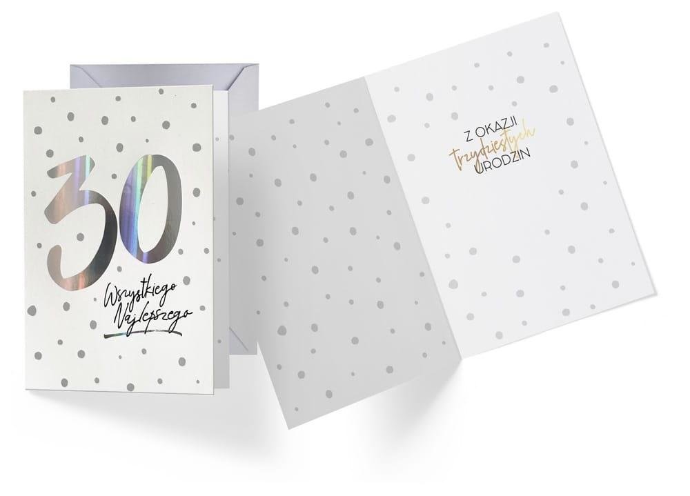 Karnet w powiększonym tzw. angielskim formacie 140x190 mm. Wykonany z niezwykłą dbałością o szczegóły, zdobiony folią holograficzną i w całości pokryty folią matową dla podkreślenia efektu prostoty i elegancji. Wewnątrz znajduje się tekst życzeń, a całość uzupełnia dedykowana koperta. číst celé