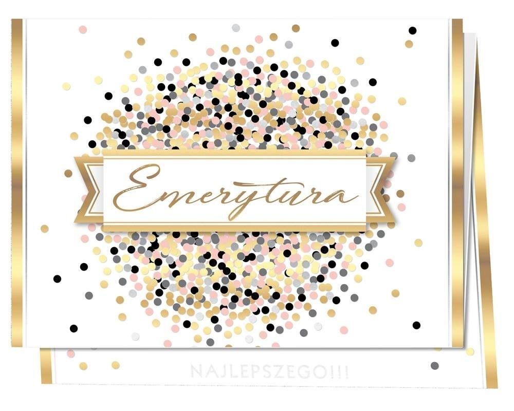 Kartki z serii Primus to więcej, niż się spodziewasz - to pamiątki godne zachowania na przyszłość i oglądania przy okazji wspominania wyjątkowych momentów w życiu. Każdy Primus to małe dzieło sztuki - bogato zdobione, smiałe i bezkompromisowo atrakcyjne. Emerytura to wyjątkowa okazja godna wyjątkowego prezentu, który zapadnie w pamięć - a taki właśnie jest ten karnet. Zdobienia: dekoracje ze złotej foli holograficznej, koperta: dopasowana w komplecie, wnętrze kartki: życzenia w środku.